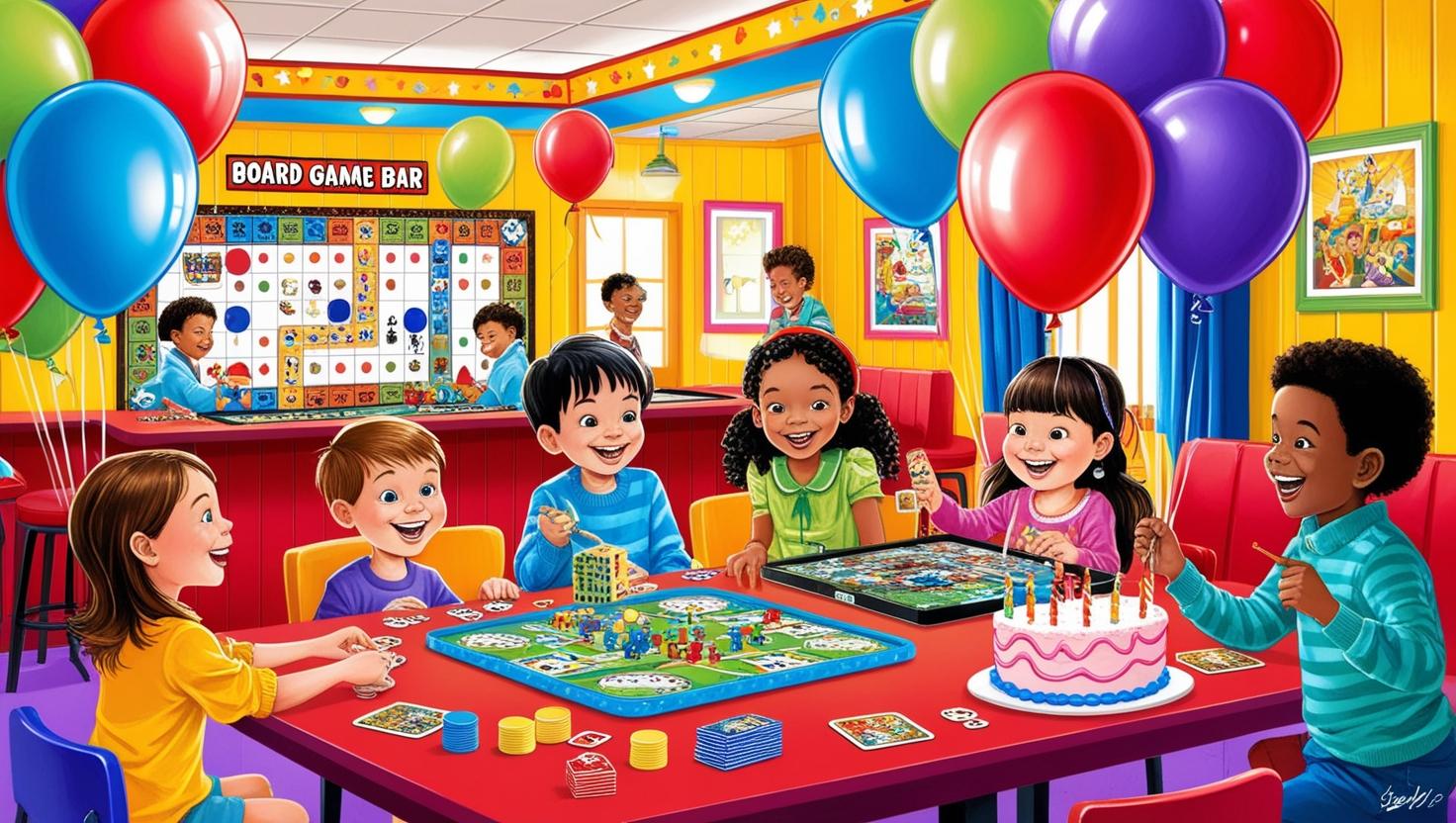 dessin anniversaire d’enfants dans un bar à jeux de société