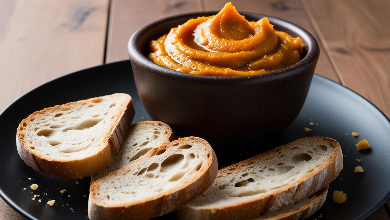 une bolinette de tartinade potiron miel gingembre servie sur une assiette noire avec beaucoup de pain une bolinette de tartinade potiron miel gingembre servie sur une assiette noire avec beaucoup de pain Navigation de l’articleNouvelle tartinade : potiron miel gingembre